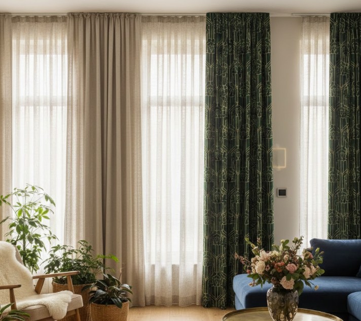 Z drugiej strony do łask wraca maksymalizm. Dla osób, które chcą, aby okno było centralnym punktem salonu, projektanci proponują ciężkie welury w głębokich odcieniach granatu, butelkowej zieleni czy burgundu. Modne są również geometryczne wzory inspirowane stylem art déco oraz motywy florystyczne w skali XXL. Ważne jest jednak zachowanie balansu – przy bogato zdobionych zasłonach reszta pomieszczenia powinna pozostać bardziej stonowana, by uniknąć chaosu.